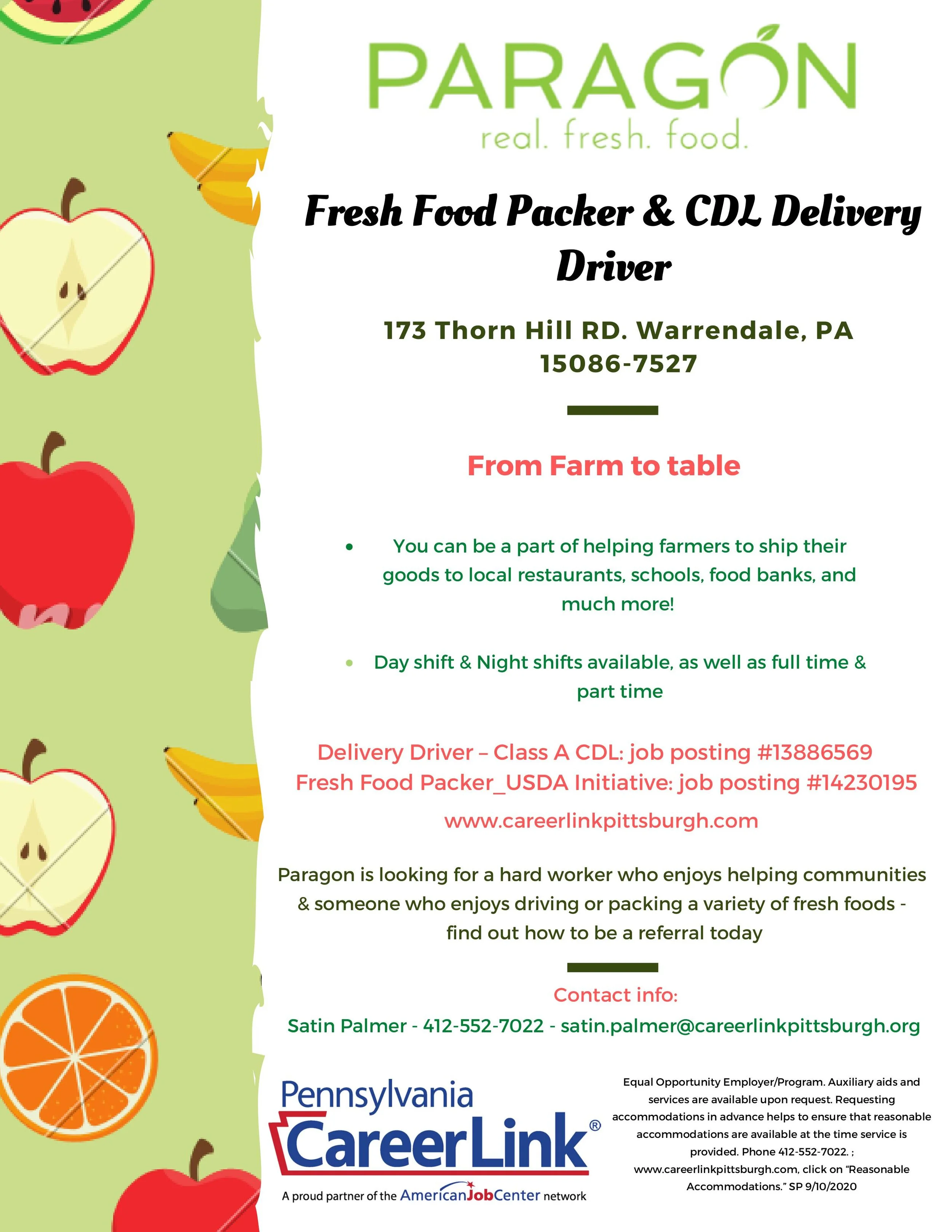 Candidates can learn more about all of the openings at Paragon Food and have a chance to ask any questions.
